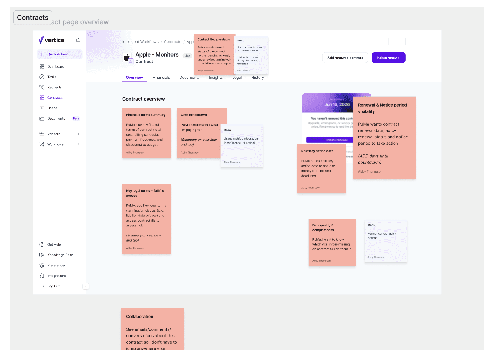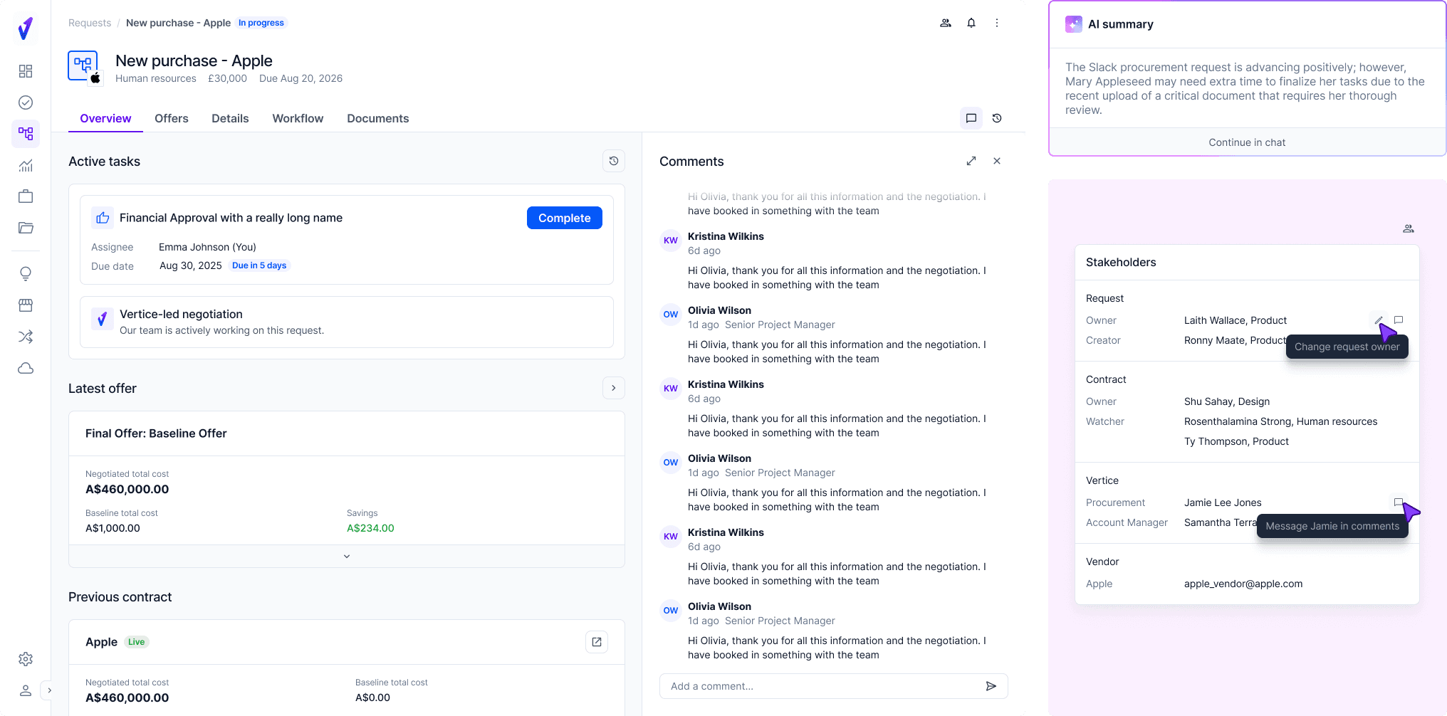Vertice helps companies buy and renew software at the best price, saving them millions. The platform centres around two core objects: contracts and new purchase requests.